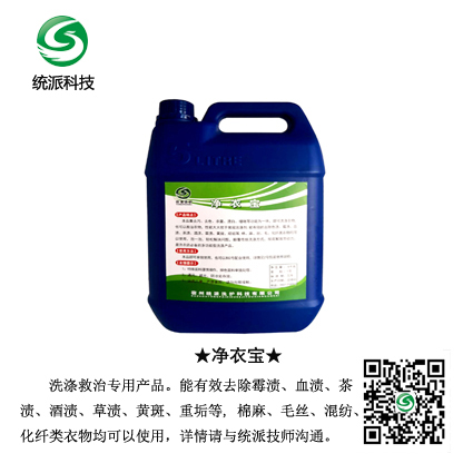 产品特点:本品集去污、去色、杀菌、漂白、增艳等功能为一体,即可用于洗涤衣物,还可以用来救治,性能大大优于常规洗涤剂,能有效的去除色渍、霉渍、血渍、茶渍、酒渍、草渍、黄斑、顽垢等,棉、麻、丝、毛、化纤类衣物均可以使用,泡一泡,轻松解决问题,颠覆传统洗涤方式,彻底解放劳动力,是洗衣店必备的多功能型洗涤品。