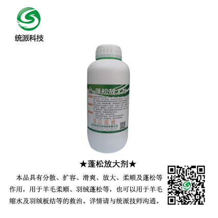 产品特点:本品具有极强的分散、扩容、滑爽、放大、缩绒、柔顺及蓬松作用,用于羊毛、羊绒类衣物的缩水、变大等的恢复,并能有效的预防和救治因洗涤不当发生的羽绒变硬、结团、失柔、静电等现象,是洗衣店的得力助手。